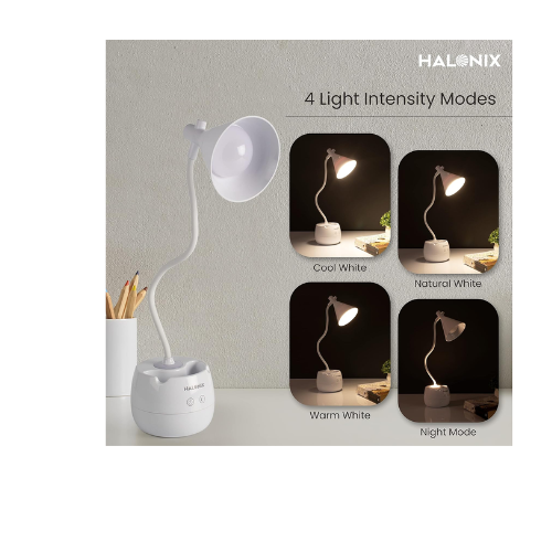Smart Desk Light, Rechargeable, Eye-Caring, Touch Control, 3-in-1 Light Color, USB Charging, for Students, Pen Holder