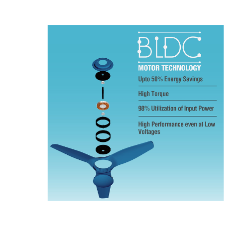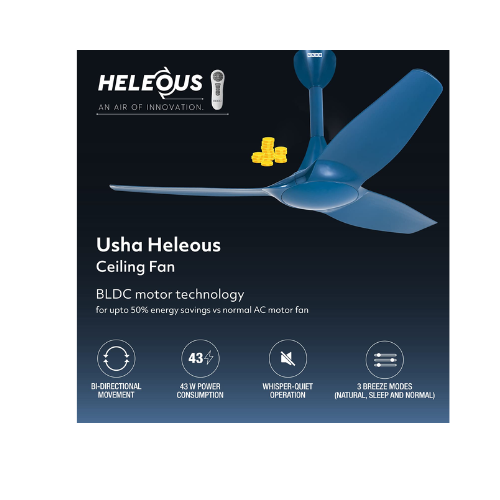 USHA Heleous 1220mm BLDC Ceiling Fan Premium, RF Remote, Rust Free, ABS Blades, Imperial Blue