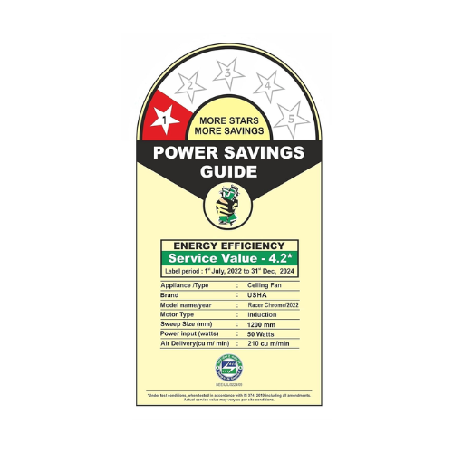 USHA Racer Chrome 1200mm 50 Watt Energy Efficient 1 Star Rated Power Saving High Speed Decorative Ceiling Fan