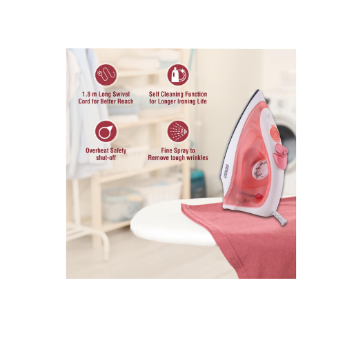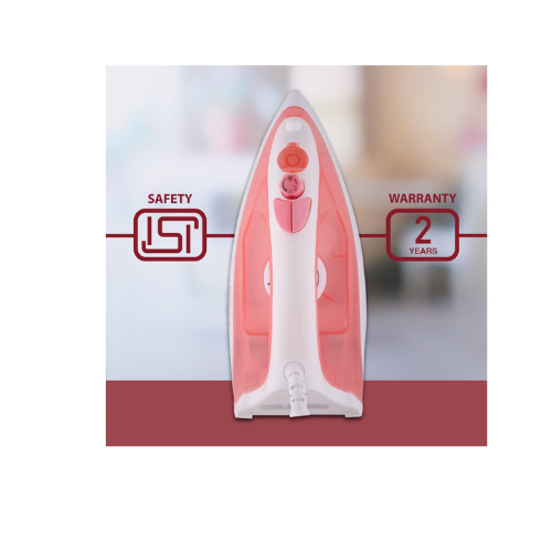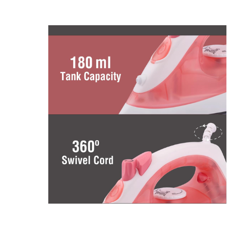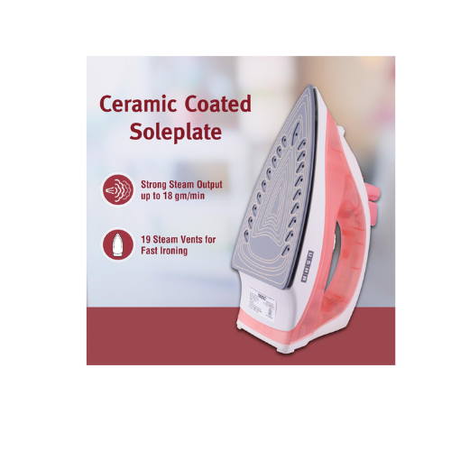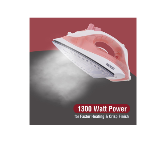 USHA SI 3813 C 1300W Steam Iron with Ceramic Coated Sole Plate, Self Cleaning, 180ml Water Tank, 360° Swivel Cord, Spray & Steam Burst Function – 2 Year Warranty (Pink)