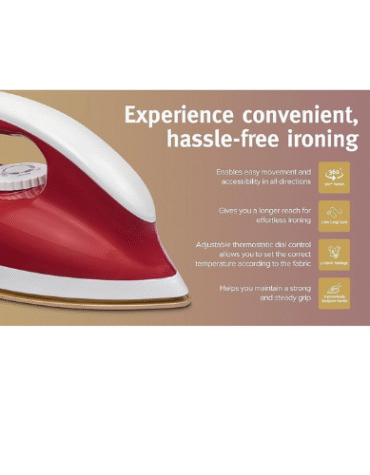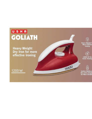 USHA Goliath 1200Watt Dry Iron with 1.8m Long Swivel Cord | Double Coat Golden Non Stick Soleplate for Longer Durability | 360° Swivel Cord | 2 Years Warranty | (Maroon), 1200 watts, Plastic