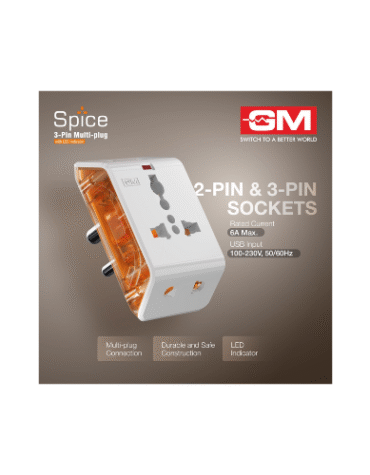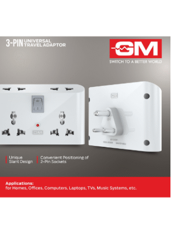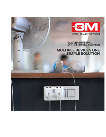 GM 6AMP 3-Pin Multi Plug Adapter | Universal Travel Adaptor | Supports 2-Pin & 3-Pin Plugs | Multiple Charging Ports | Charge Smartphones, Laptops & Other Devices | Compact & Reliable | GM 3017 (1)