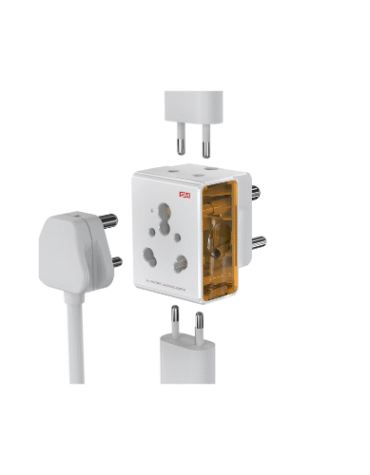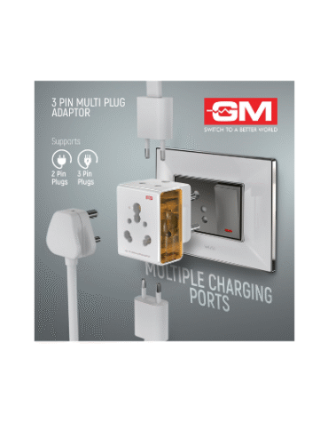 GM 16AMP 3-Pin Multi Plug Adapter | Universal Travel Charger | Supports 2-Pin & 3-Pin Plugs | Multiple Charging Ports | Charge Smartphones, Laptops & Other Devices | Compact & Reliable | White GM 3050