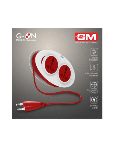 M 3206 G-On Extension Board with 2 International Sockets | 2.5M Extension Cord | Dual-Tone Design | Child Safety Shutters | Compact & Travel-Friendly | 240V Power for Laptops, Phones & More