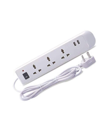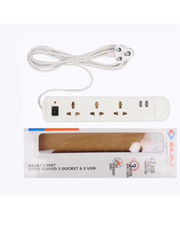 BAJAJ 3-WAY SPIKE GUARD 3 SOCKET & 2 USB 3 Socket Extension Boards (White, 3 m, With USB Port)