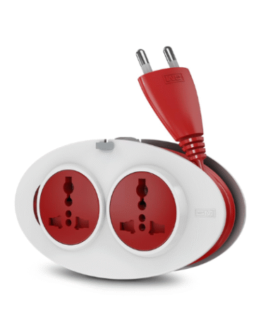 Elleys’ ZYNEX Extension Board 10Amp with Master Switch – (Red & White) Color with Indicator 4 International Sockets | Multi Plug Travel Adapter for Home Appliances 2 Meter